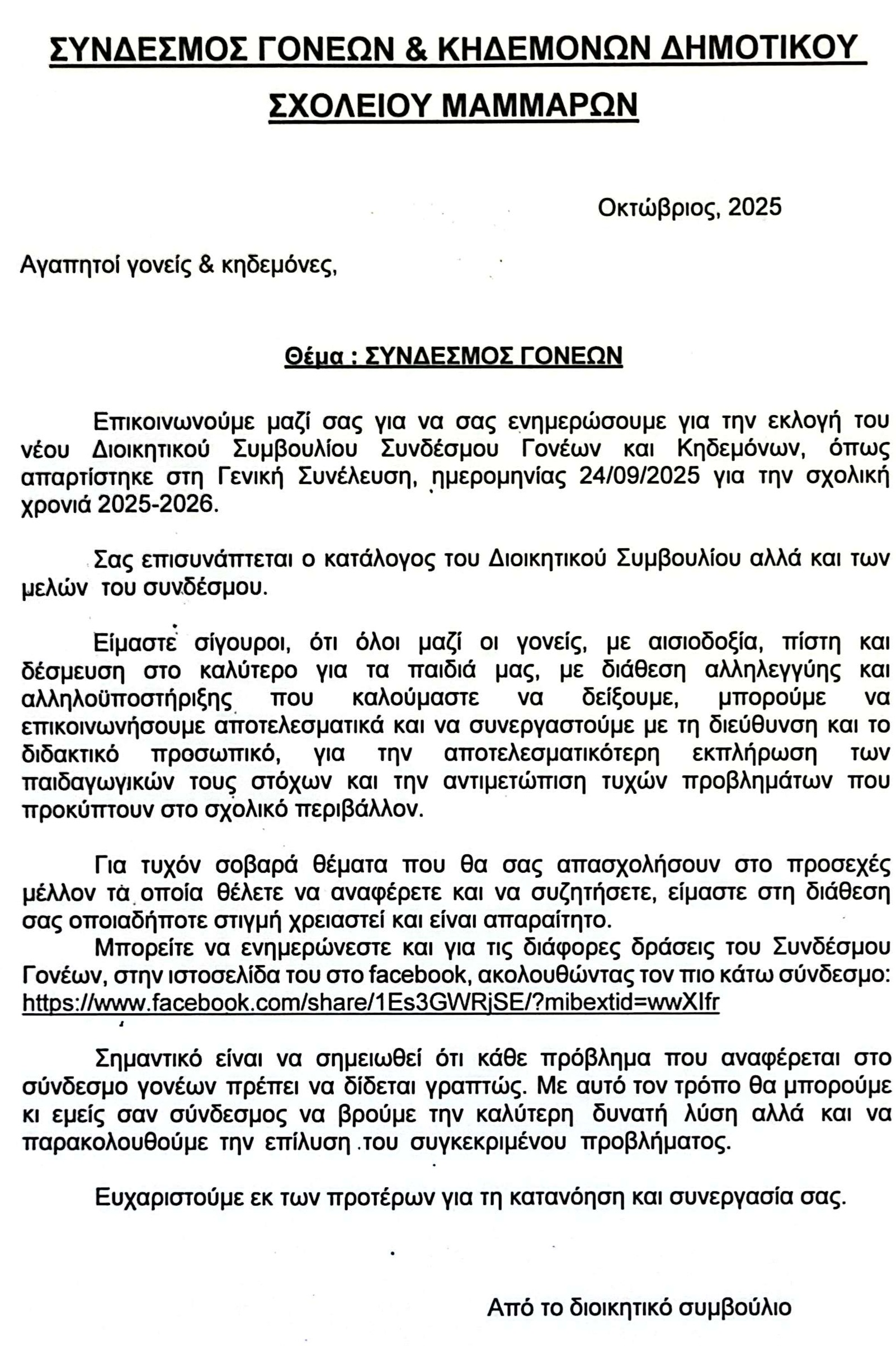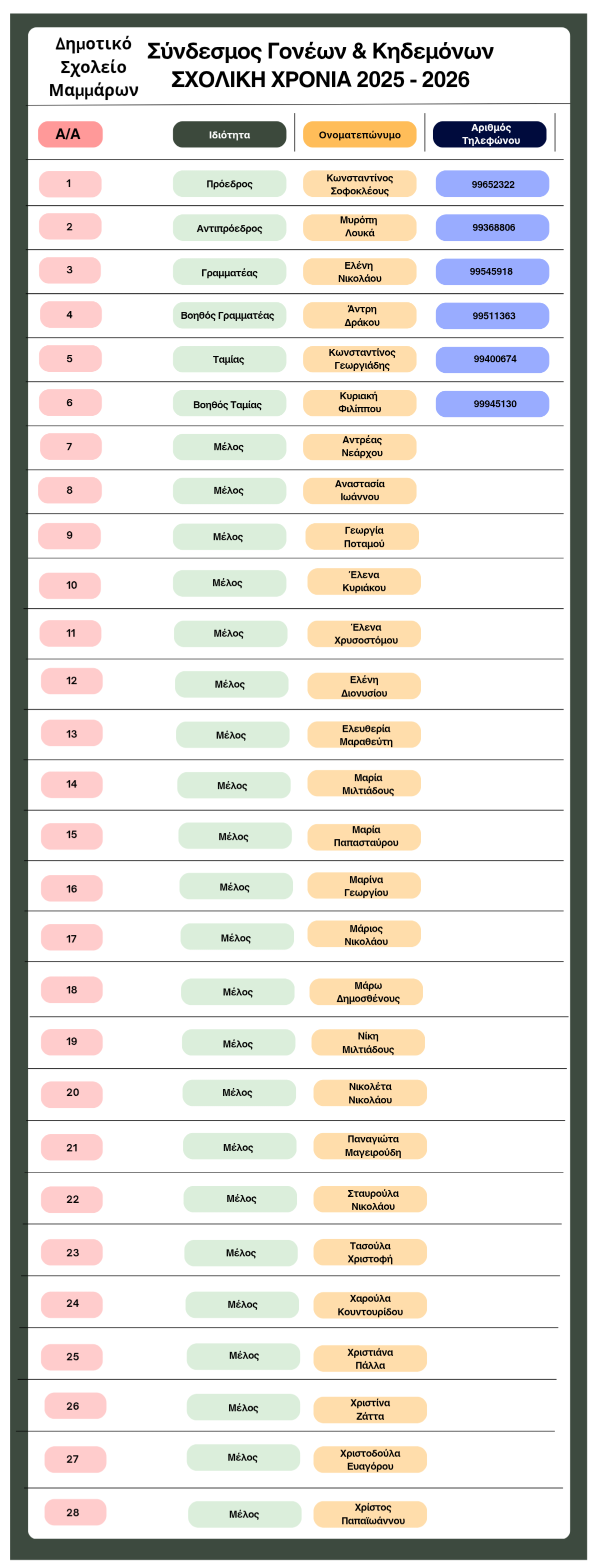 Μέλη Συνδέσμου Γονέων Δημοτικού Σχολείου Μάμμαρι Σχολικό έτος 2023-2024